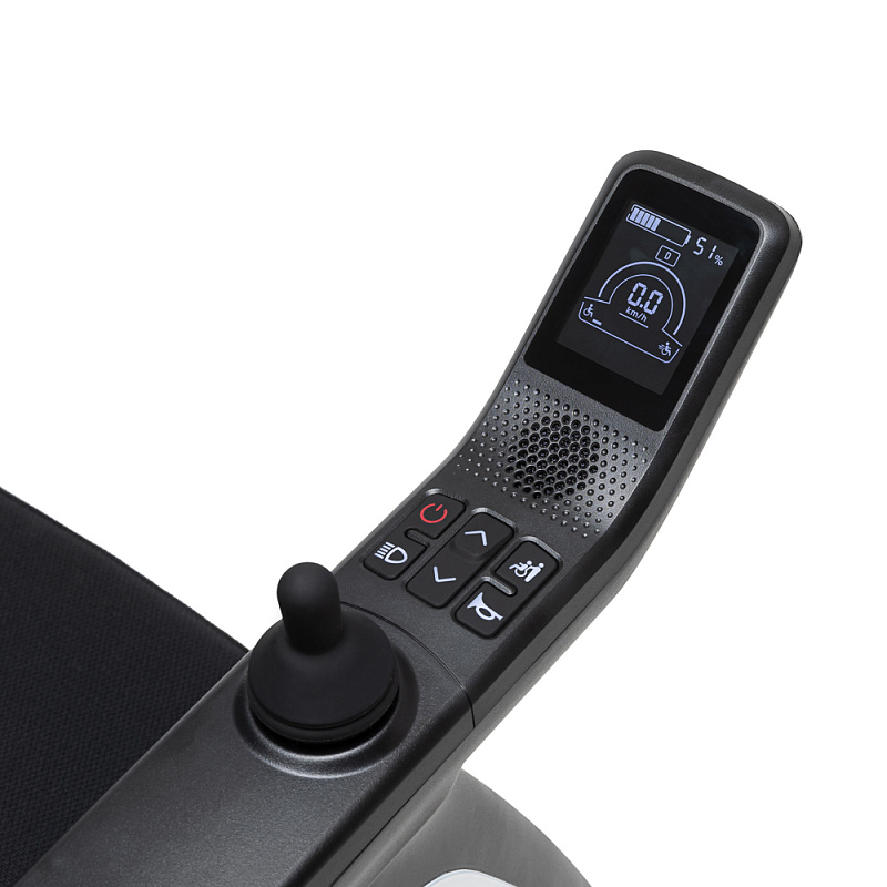 Мощные бесщеточные двигатели и большие пневматические колеса обеспечивают проходимость, а амортизаторы снижают нагрузку на позвоночник.